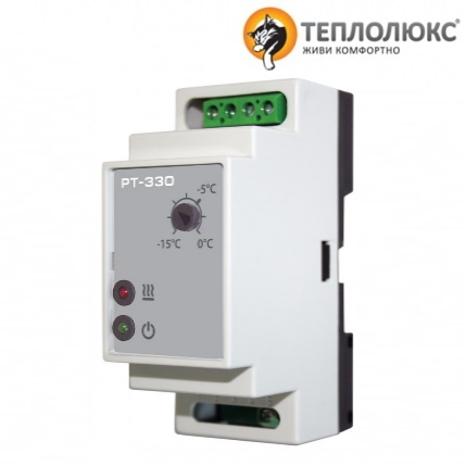 Регулятор температуры электронный РТ-330 входит в состав систем электрообогрева дорожек, ступенек, пандусов для предотвращения образования на них наледи, а также для систем обогрева кровли для предотвращения закупорки льдом элементов водосточной системы и обеспечения канала для стока талой воды. Этот регулятор температуры, используется преимущественно для управления простыми антиобледенительными системами. Он постоянно контролирует температуру наружного воздуха при помощи внешнего датчика температуры. При попадании текущего значения температуры в установленный температурный диапазон, регулятор коммутирует встроенное реле (16 А, 250 В). При выходе температуры из установленного температурного диапазона, контакты реле размыкаются. Плюсовая граница температурного диапазона устанавливается при изготовлении на +5 °С и регулировке не подлежит. Минусовая граница температурного диапазона может быть установлена пользователем при помощи рукоятки подстройки, расположенной на лицевой панели прибора, в интервале от -15 до 0 °С.