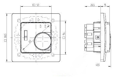 Терморегулятор EBERLE FRe 525 23 это электрическое устройство, с механическим регулятором температур, которое предназначено для контроля за работой теплого пола в обогреваемом помещении. Терморегулятор EBERLE FRe 525 23 имеет стандартные размеры для монтажа во встраиваемую коробку. На лицевой части терморегулятора расположен тумблер включения, колесо механического переключения температуры и светодиодные индикаторы, которые отражает работу системы обогрева (красный индикатор - режим контролера (обогрев включен), зеленый - включен экономный режим.